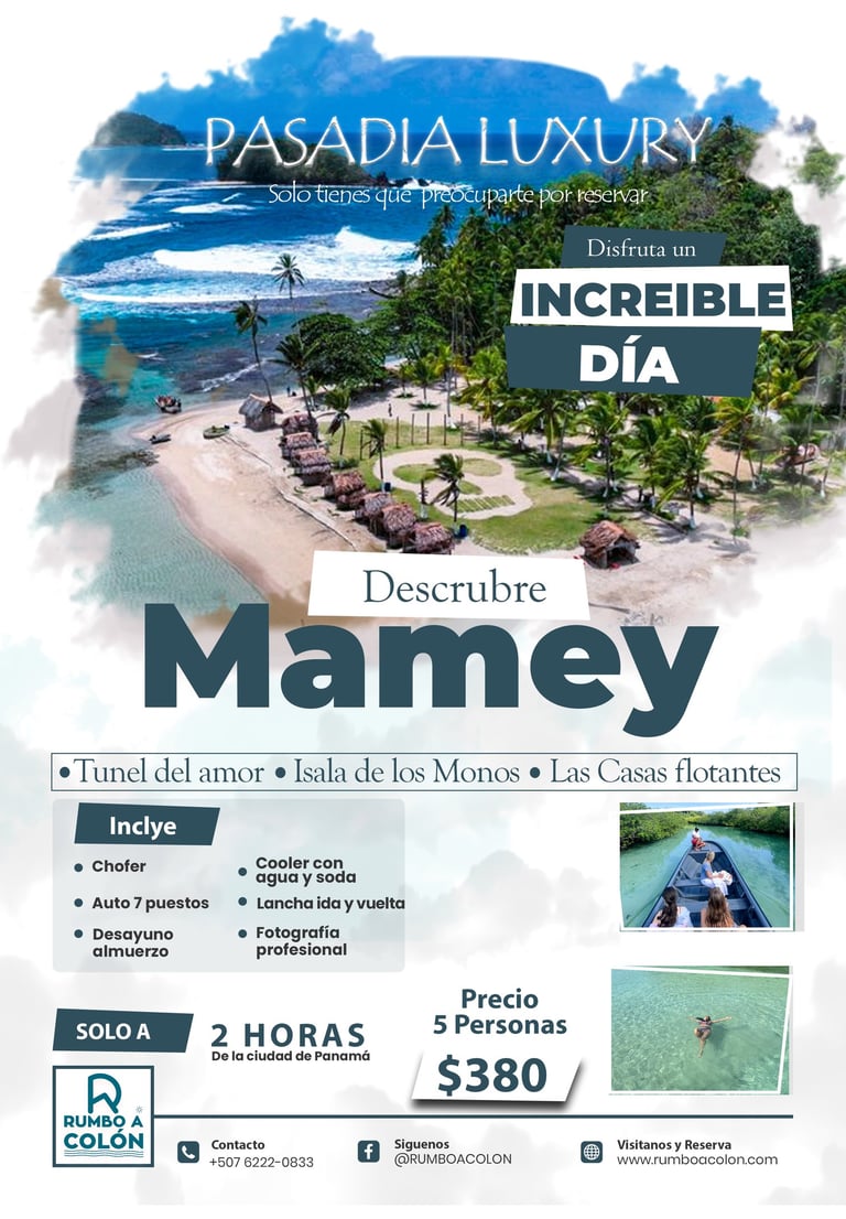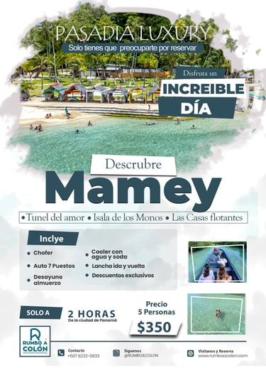 Rumbo a Colón busca mejorar la satisfacción del cliente y la mejora continua de los servicios. Creemos en el potencial de la Costa Arriba para convertirse en el principal destino turístico de Panamá y estamos dedicados a hacer realidad este sueño. Juntos, construiremos recuerdos inolvidables y dejaremos una marca positiva en cada visita a la Costa Arriba.