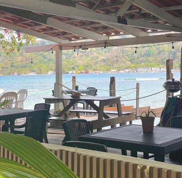 pizzeria la negra es un restaurante de mariscos frescos frente al mar Caribe en Isla Grande.